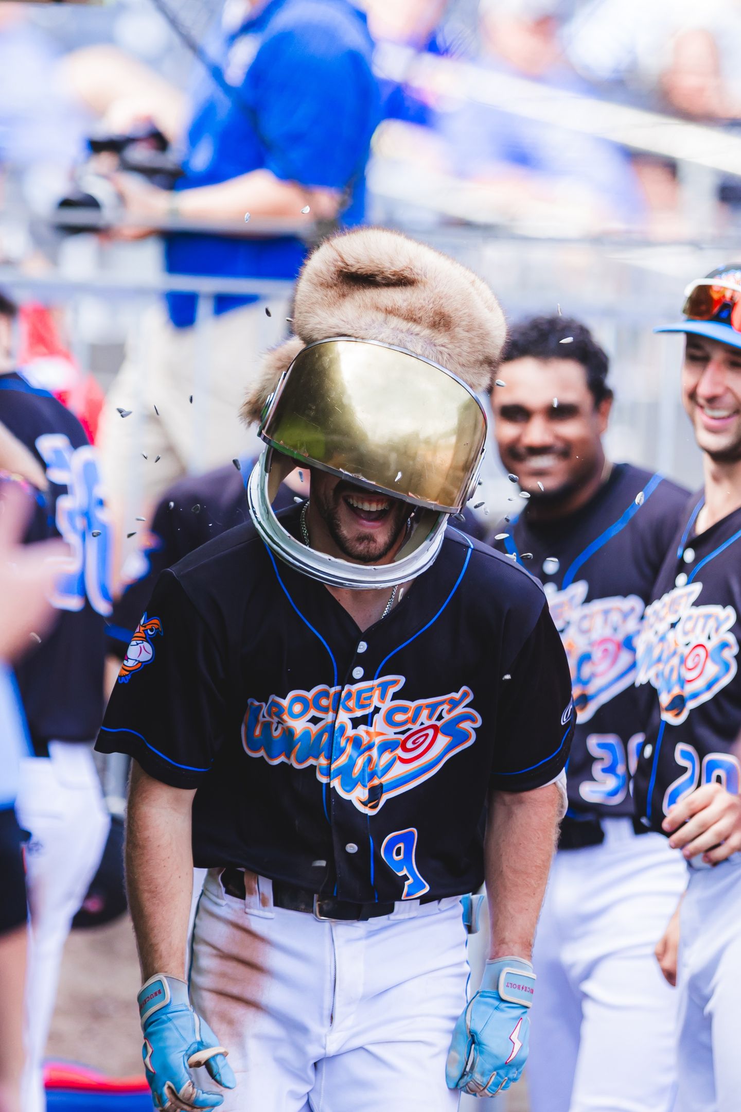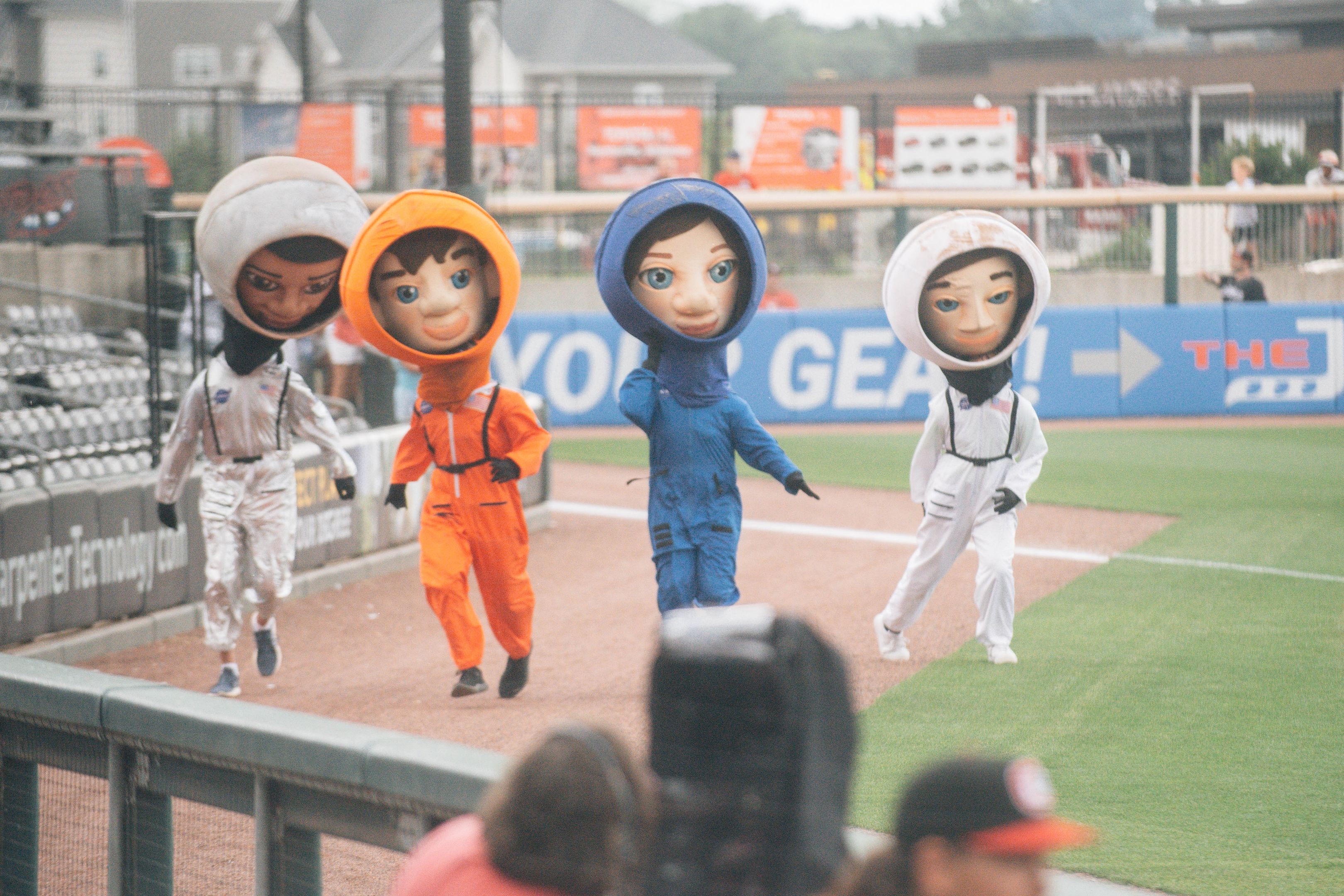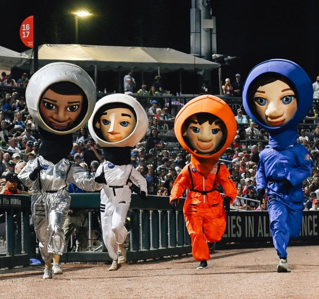 A one-of-a-kind astronaut helmet with a racoon tail was created and designed by our friends from NASA. Whenever a Trash Pandas player hits a home run, he would be greeted with the Astronaut helmet for a celebration fit for Rocket City.