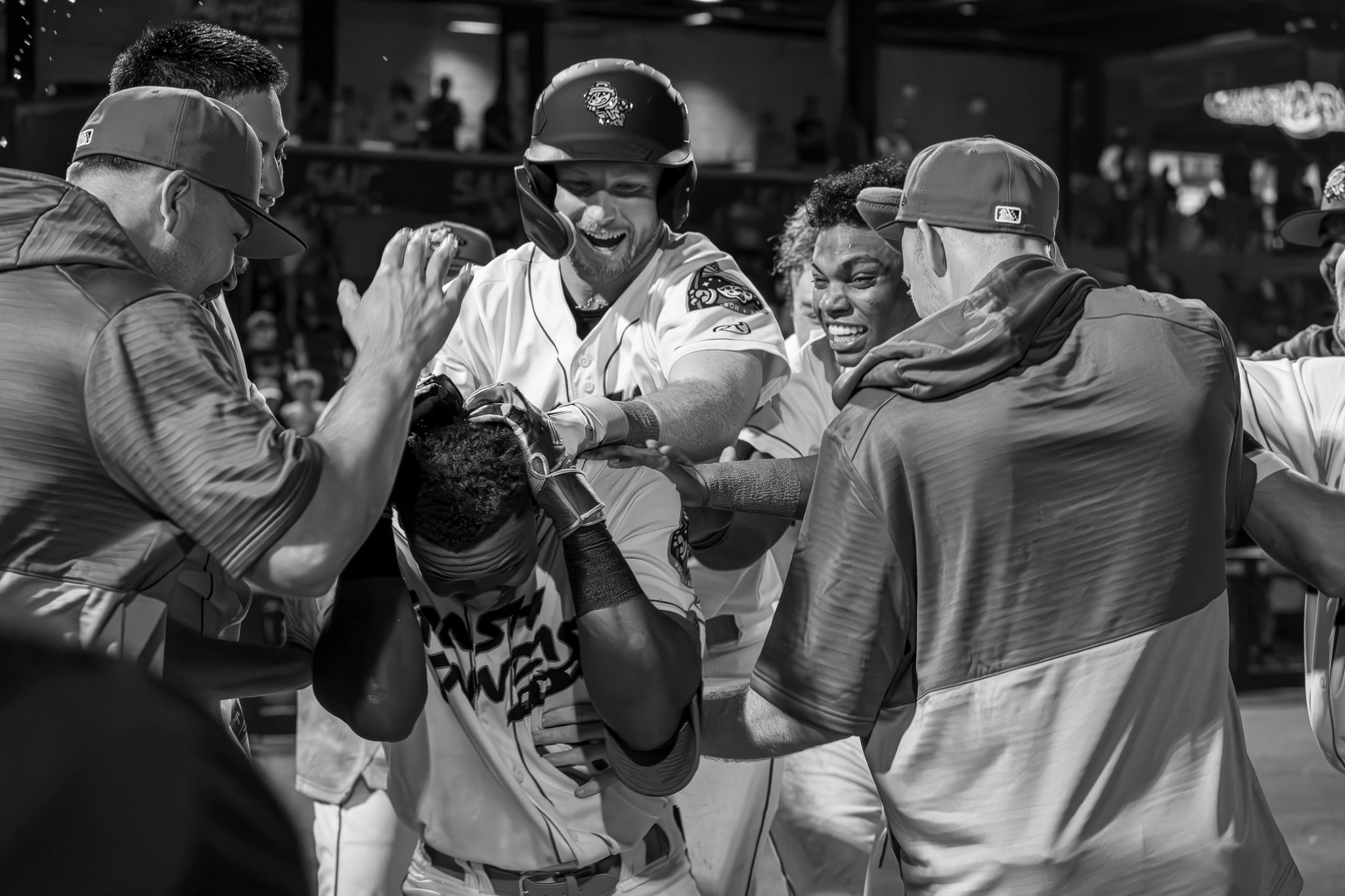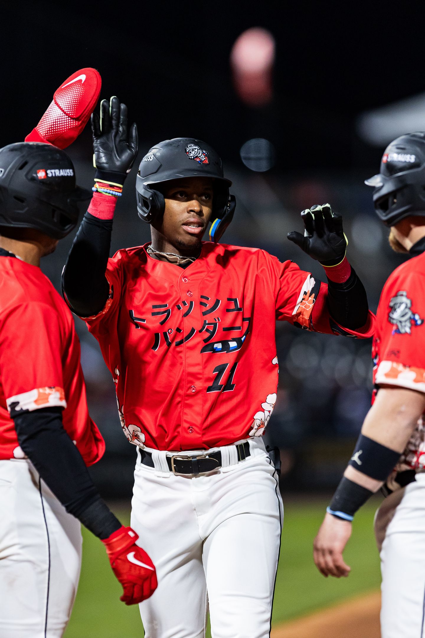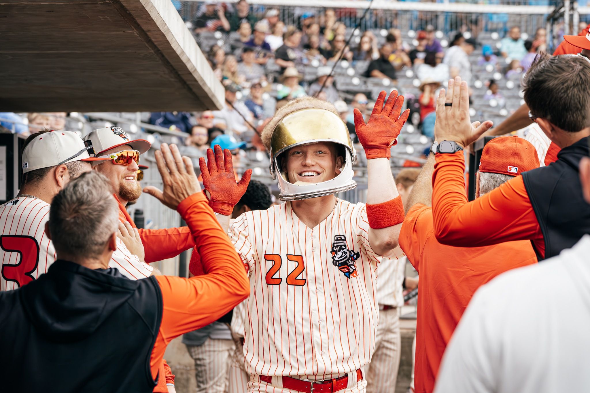 A one-of-a-kind astronaut helmet with a racoon tail was created and designed by our friends from NASA. Whenever a Trash Pandas player hits a home run, he would be greeted with the Astronaut helmet for a celebration fit for Rocket City.