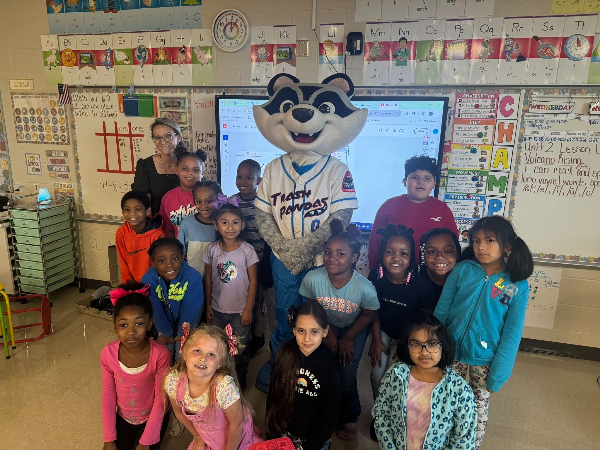 The Trash Pandas Foundation started a Reading with Sprocket program to inspire and motivate local students in the North Alabama. Each student received a custom Trash Pandas bookmark and folder to track their progress. Once the program is complete, students received a surprise visit from Sprocket and a Trash Pandas ticket to enjoy a game.