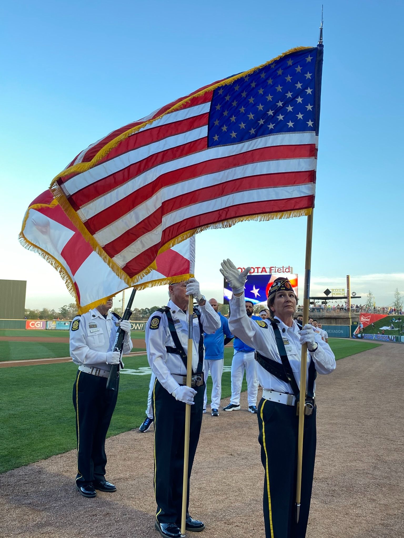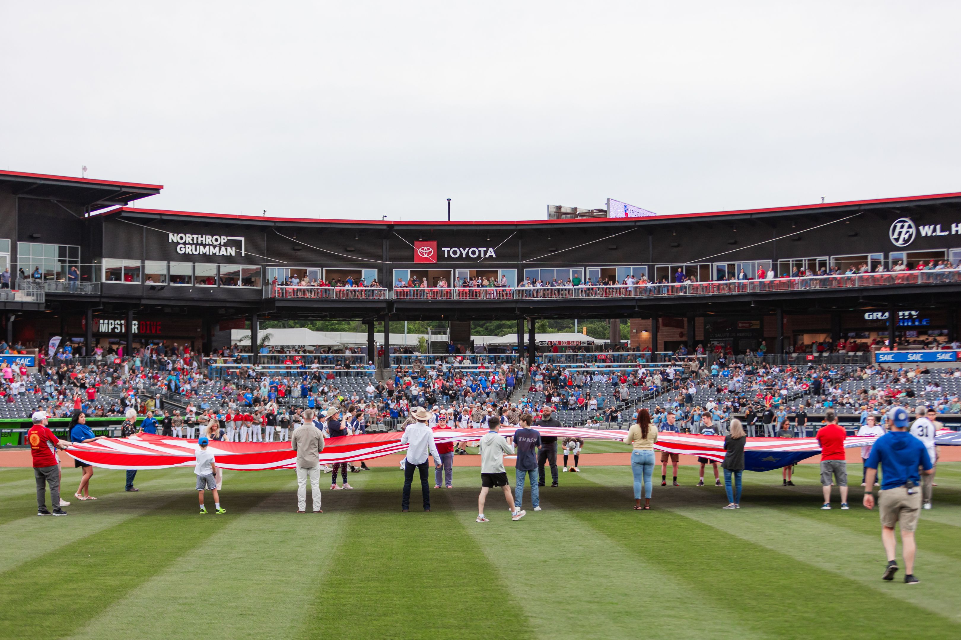 Local organizations and civic groups have the opportunity to display a large American Flag in centerfield. The Trash Pandas players wear camouflage during the game in acknowledgement of their service and hard work of our local community.